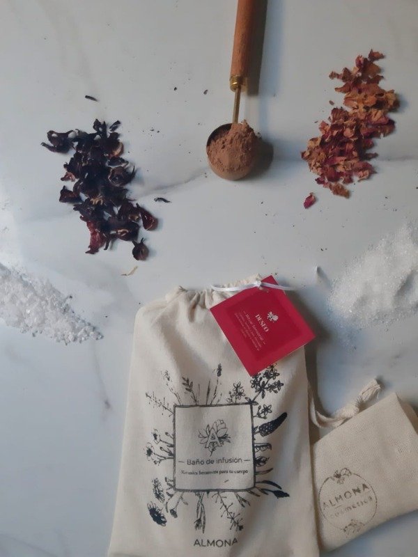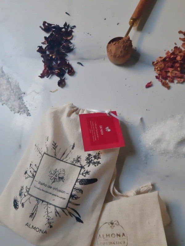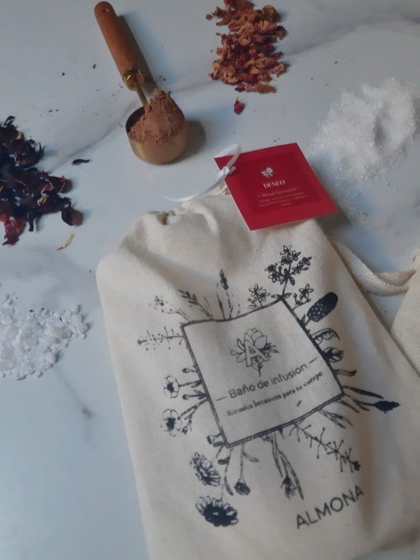 Sumergir el saquito en agua caliente y dejar infusionar durante 3 minutos. Luego, llenar la bañadera y entrar en el baño, permitiendo que la infusión envuelva el cuerpo y acompañe el ritual.