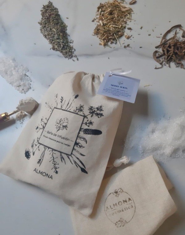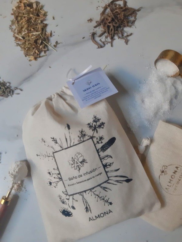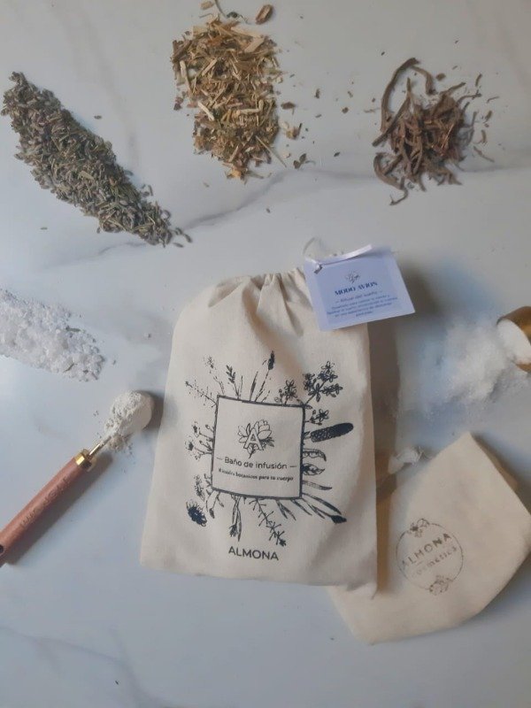 Sumergir el saquito en agua caliente y dejar infusionar durante 3 minutos. Luego, llenar la bañadera y entrar en el baño, permitiendo que la infusión envuelva el cuerpo y acompañe el ritual.