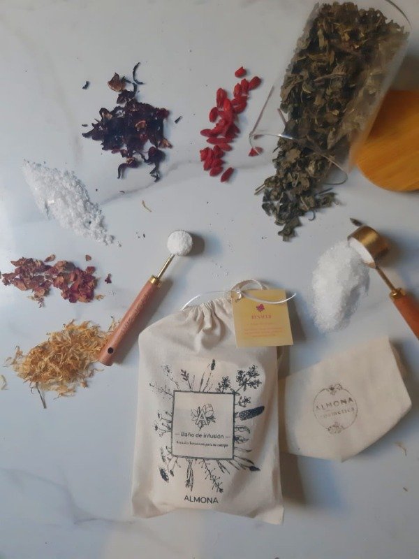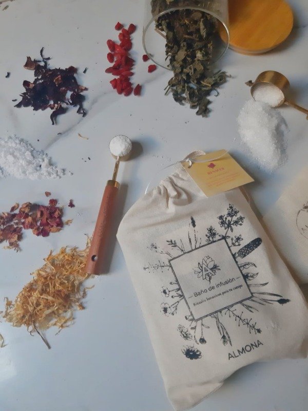 Sumergir el saquito en agua caliente y dejar infusionar durante 3 minutos. Luego, llenar la bañadera y entrar en el baño, permitiendo que la infusión envuelva el cuerpo y acompañe el ritual.